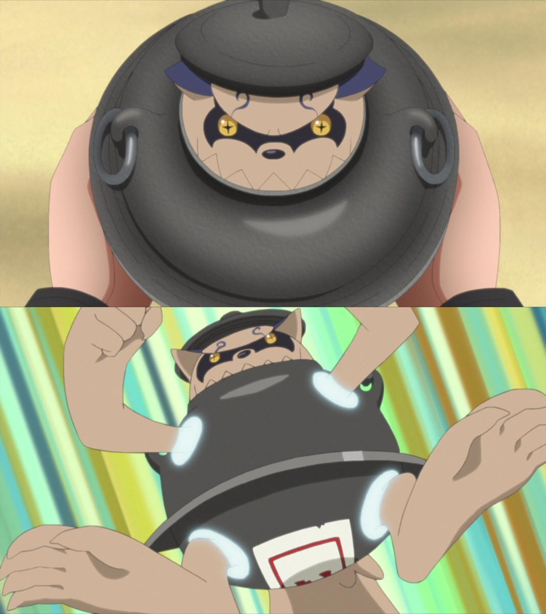 Шукаку, запечатанный в чайнике для чая, является отсылкой к одной японской сказке под названием Бунбуку Чагама.