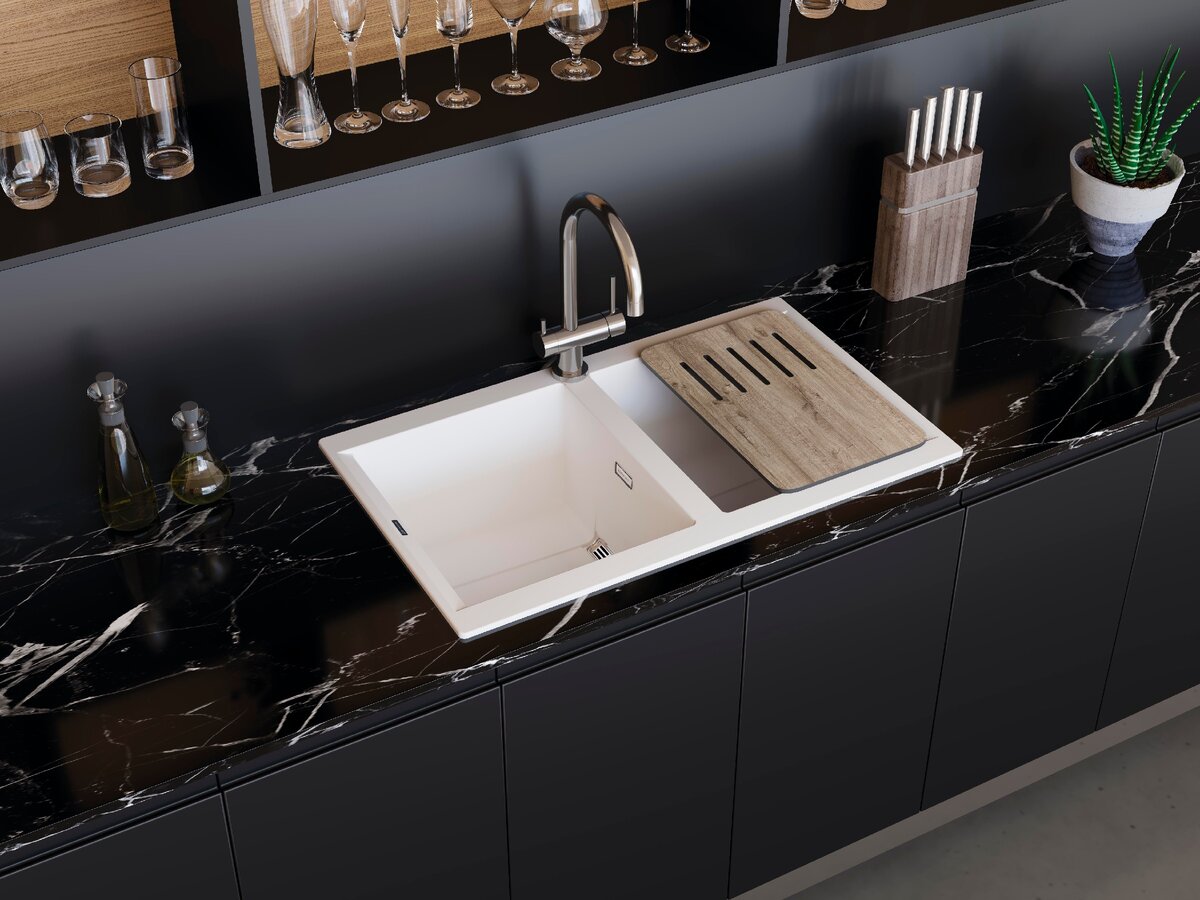 Мойка изготовлена из очень качественного долговечного материала Artceramic. Этот материал позволяет добиться абсолютно белого и черного цвета. Поэтому мойка из Artceramic будет выглядеть очень эффектно! К тому же, мойки из этого материала имеют гарантию 20 лет.