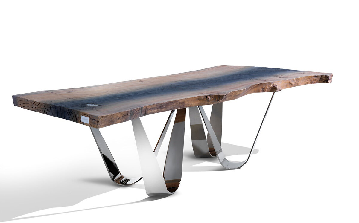 Дизайнеры премиального итальянского бренда готовились представить свои творения на мебельной выставке мирового масштаба «iSaloni–2020». И хотя это знаковое мероприятие перенесли на апрель 2021 года, новинки от Bizzotto доступны к предварительному заказу уже сейчас. Один из ключевых предметов новой коллекции бренда – стол Reverse, изготовлен из корня шиповника с металлическими ножками chrome black. Интерьерная композиция обозначает единство природных стихий – земли и воздуха. Светлая деревянная столешница, покрытая смесью Shade, гармонично сочетается с воздушным основанием, создающим ощущение легкости. Заслуживает внимания синий туалетный столик линейки IKAT с голубовато-серыми элементами и оформлением из светлой кожи. Он выглядит довольно романтично, но, вместе с тем, не лишен футуристического настроения. Столик отлично гармонирует с креслом Ginko, обитом светлой зернистой натуральной кожей. Кресло имеет оригинальную форму, напоминающую скрученный лист гинкго. Этот природный мотив по