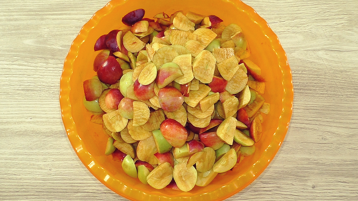- 1150 кг. пюре (чистый вес, без кожуры, количество может отличаться, всё зависит от сорта и размера яблок)