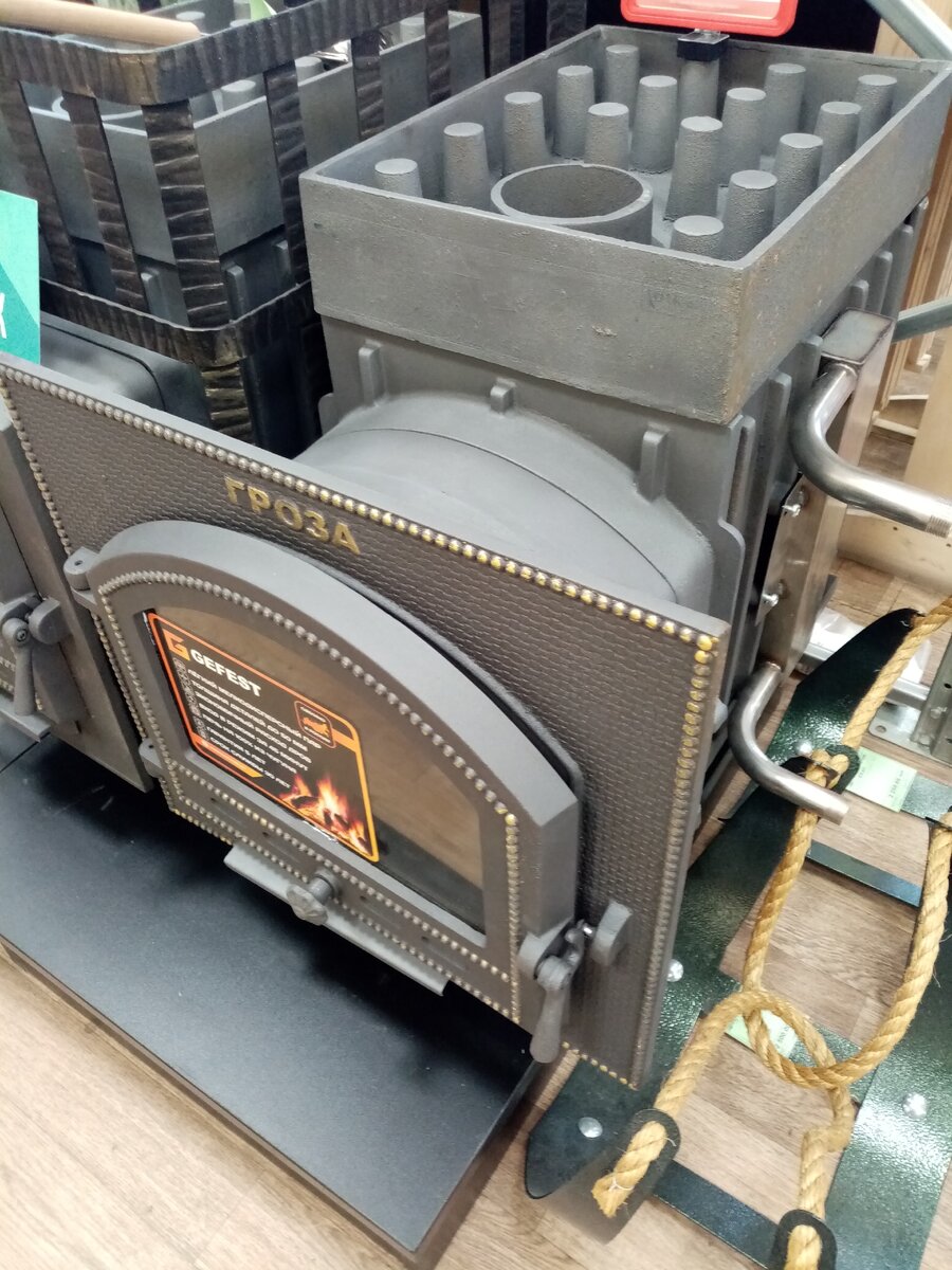 Буквально на прошлой неделе, ко мне обращался заказчик с вопросом, есть ли какие-то встраиваемые теплообменники для чугунных печей Гефест, на что я ответил, что нет и предложил ему поставить теплообменник на трубу. Но, тут зайдя в магазин, я случайно увидел этот самый теплообменник, который производит компания Гефест, для своих печей. Изготовлен из стали AISI 430, толщина 1.5мм. Объем 1.4 литра. Этот теплообменник можно устанавливать на левую или правую сторону, для этого на стенке сделаны специальные отверстия под болты. Все печи Гефест, являются сборными, собираются из отдельных частей, боковые стенки взаимозаменяемые. Цена такого теплообменника 4 500 руб, вполне приемлемые деньги. Этого действительно не хватало в печах Гефест.