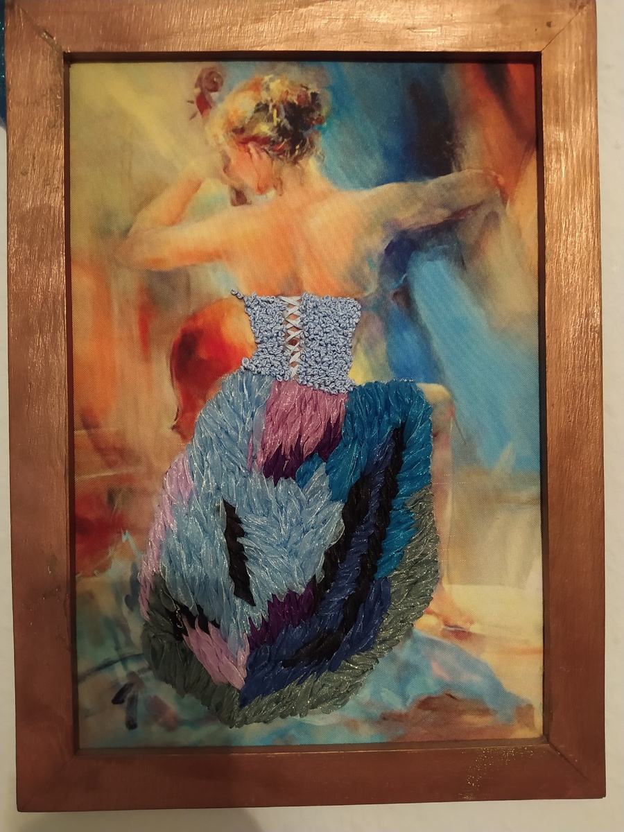 Привет всем ! Расскажу про мое хобби -вышивка лентами. Холодными зимними вечерами вышивала). Для работы требуется шелковая ткань с нанесенным рисунком (принт),шелковые ленты и терпение).На такую картину уходит пару часов. Очень интересен процесс работы и конечно же результат!