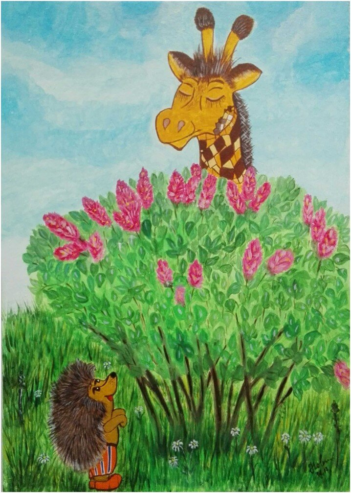 Весёлая компания, с которой познакомился Гоша, состояла из сома Уса Бурлилкина, муравья Мурашки, ёжика Иголкина, бычка Быки и теперь вот его самого — жирафика Гоши.