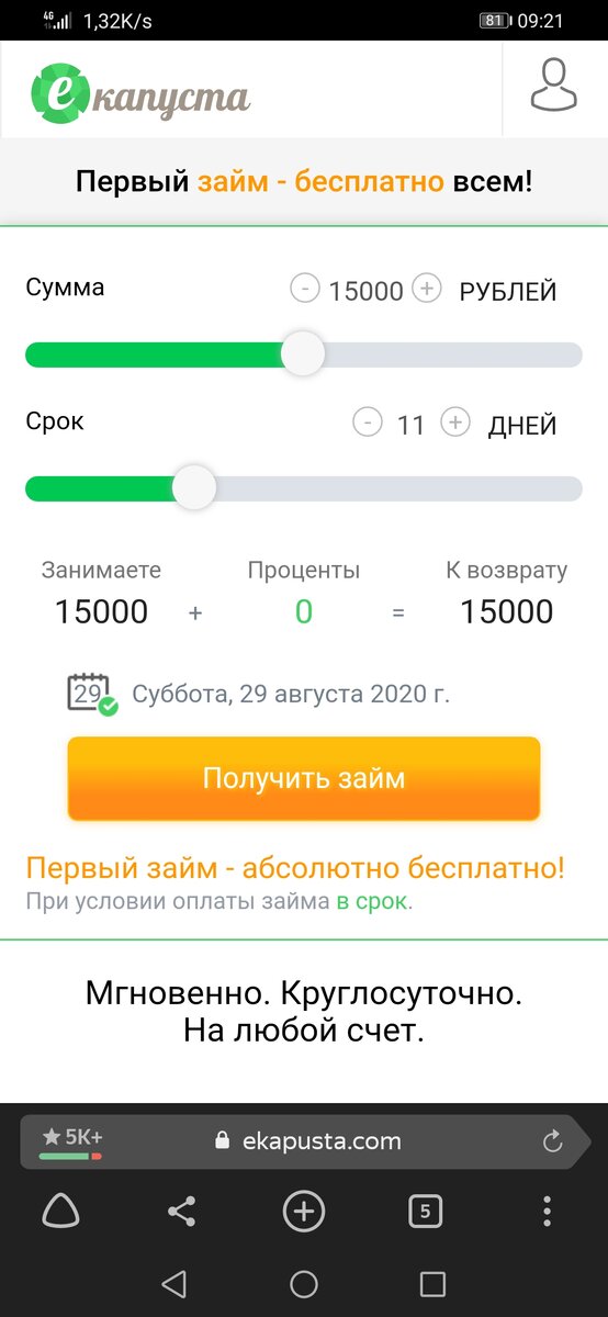 он предоставить вам до зп. Денюшку, еще у них есть приятный бонус в 500 руб. на счет новичку что тоже очень хорошо. Сам уже пользуюсь данным сервисом займ. Екапуста. Переводит мгновенно вам на счет и без всяких проблем и вопросам. Нужно лишь указать правильность своих данных и денюжка уже есть. А навечку в этом деле они предлогают 500 бонус рублей. Это очень удобно при отдачи им долга, вам уже на 500 рублей меньше отдовать. Но также и есть 1% от суммы свас. Чтоб его получить нужно вводить промокод вот так он выглядит Что очень хорошо. Не чего сложного в регистрации нет. Можно и через любые социальные сете в которых вы зарегались. Спасибо что прочитали стотью. Не кого не принуждаю. Стотья для информации, кому интересно пользуйтесь. Вот ещё оставлю ссылочку кому интересно. <a href="https://ekapusta.com/?bonus=DKN-4A