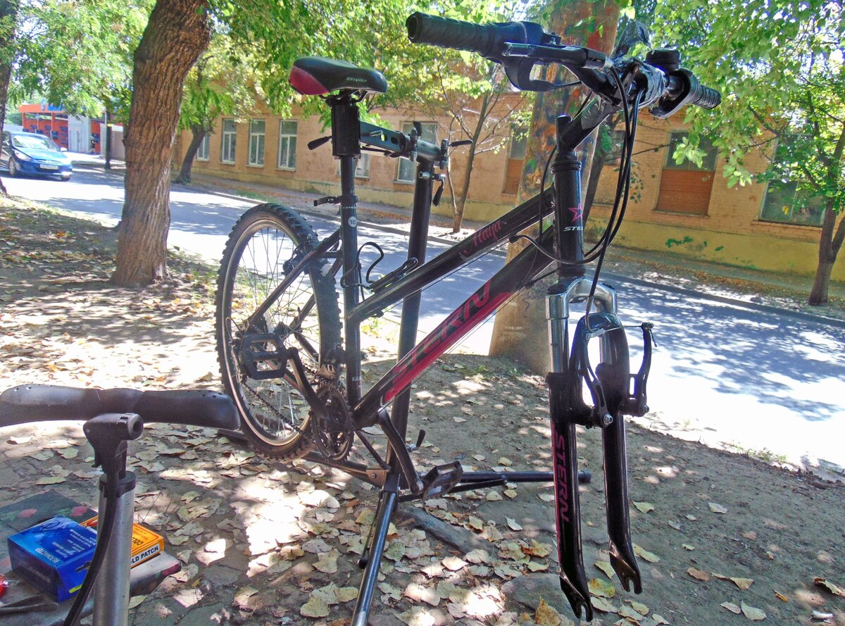 Привезли ко мне недавно велосипед с жалобой на проколы. Заклеил. Через несколько дней снова прикатили. Хотя покрышку проверяли и ничего в ней не было. И задумались мы с владельцем, что можно сделать, чтобы минимизировать количество проколов. В голову пришёл способ, который мне однажды подсказал один дедуля на советском велосипеде. Вот собственно сам пациент, Stern Maya: И то, что потребовалось (заплатки не потребовались, так как в старой камере было очень много отверстий): Но старая камера нам потребуется как раз для того способа, чтобы защитить новую камеру, так что не выбрасываем её. Разрезаем старую отслужившую камеру по внутреннему шву, примерно так: Немного накачиваем новую камеру, для удобства: И вставляем новую камеру в разрезанную камеру, предварительно вырезав в старой камере отверстие под ниппель новой камеры: И дальше уже как обычно вставляем эти две камеры в покрышку и бортируем. Но прежде чем это сделать ещё один важный момент, про который тоже нужно помнить. Камеру может