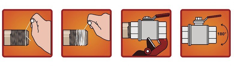 Первой виток нити закрепляют ближе к краю резьбы, а остальное наносят крестообразно. По завершении намотки соединение скручивают. Таким образом, намотанная сантехническая нить надежно уплотнит резьбовое соединение.