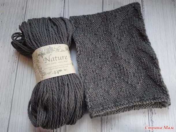 На ощупь приятная, до ВТО немного поскрипывала, но это от наличия краски. Руки красила сильно, в видео показала какие руки были после часа вязания. Решила связать шарф, узор очень простой-двусторонний.
