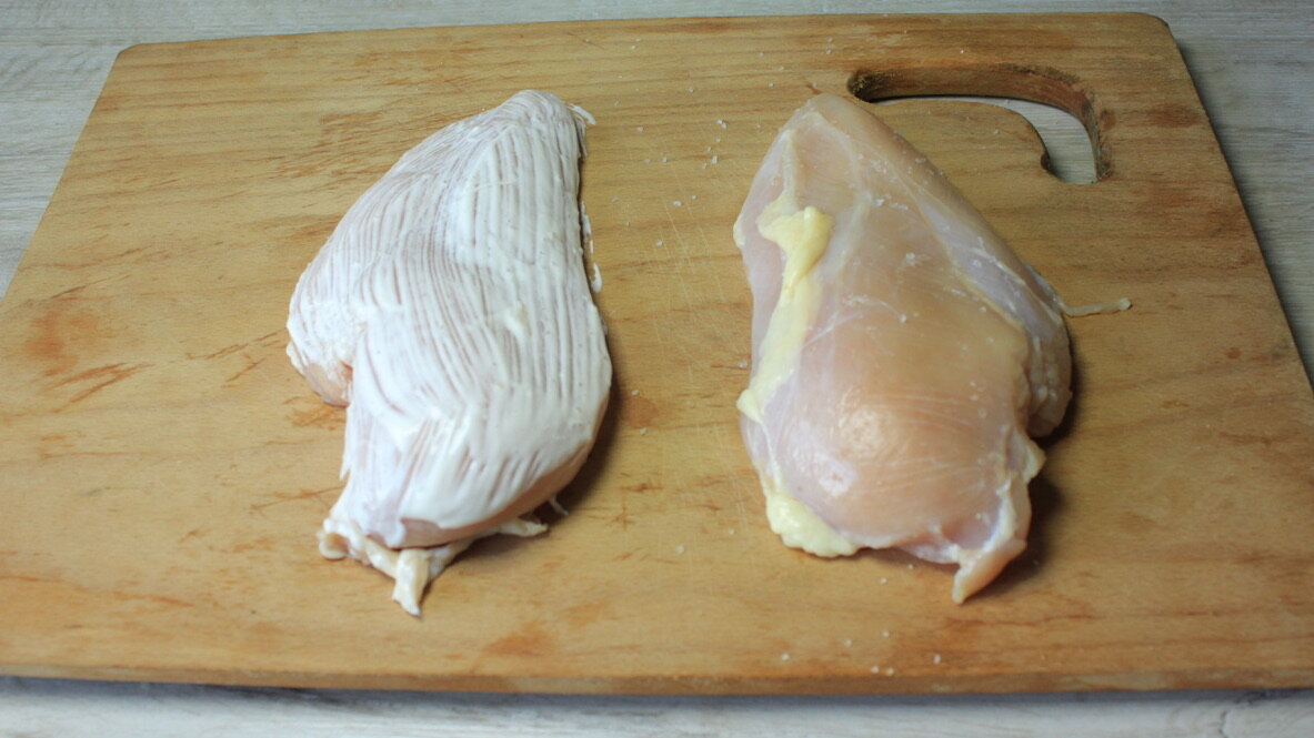 Куриную грудку (филе) сначала мою и просушиваю с помощью бумажного полотенца.