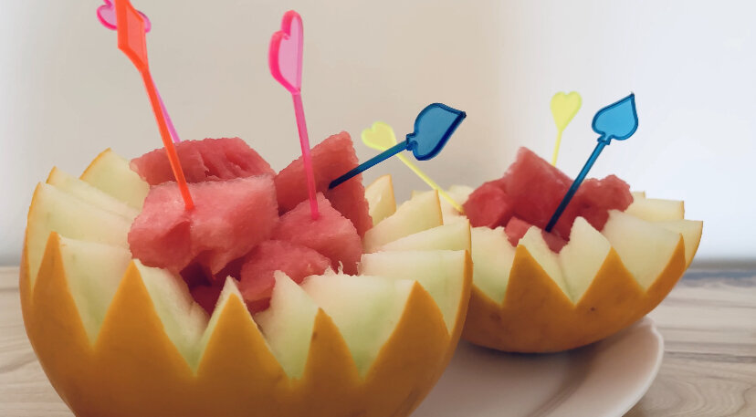 Сладкая дыня отлично утоляет жажду. Она богата легким для усвоения сахаром, белками, крахмалом, кремнием, витамином С, органическими кислотами, калием, натрием, железом и может спокойно заменить полноценный прием пищи. Предлагаем красиво нарезать ароматную представительницу бахчевых культур. Вокруг делаем надрезы ножом, глубиной 1-1,5 сантиметра. Раскрываем дыню, разделяем на две части, вынимаем семечки. Заполняем сердцевину кусочками арбуза. Подаём к столу. Приятного аппетита😘 Если понравилось, ставь лайк ❤️