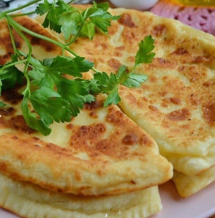 ...быстро, просто, не надо морочиться с тестом! Берем 1 ст кефира 0,5 ч. л. гашеной соды 0,5 ч. л. соли 0,5 ч. л. сахара 2,5 стак. муки 200 г творога 120–150 г сыра 2 зуб. чеснока Растительное масло Как готовим В кефир добавляем соль, сахар и гашеную соду, перемешиваем венчиком. Всыпаем частями просеянную муку, не переставая работать венчиком, пока тесто не станет плотным. Выкладываем его на стол с мукой, замешиваем не крутое тесто. Заворачиваем в пищевую пленку и оставляем на 15–20 минут. Сыр трем на мелкой терке. Добавляем творог, щепотку соли, два зубчика чеснока, пропущенных через пресс и хорошо перемешиваем. Делим начинку на 4 части. Делим тесто на 4 части. Каждую часть тонко раскатываем, примерно 5 мм. На край теста кладем начинку, аккуратно распределите. Накрываем второй половиной теста, край плотно скрепляем. Скалкой немного раскатываем готовый пирожок. Обжариваем на раскаленной сковороде с обеих сторон до румяной корочки. Хачапури готовы! Угощайтесь. Приятного аппетита!