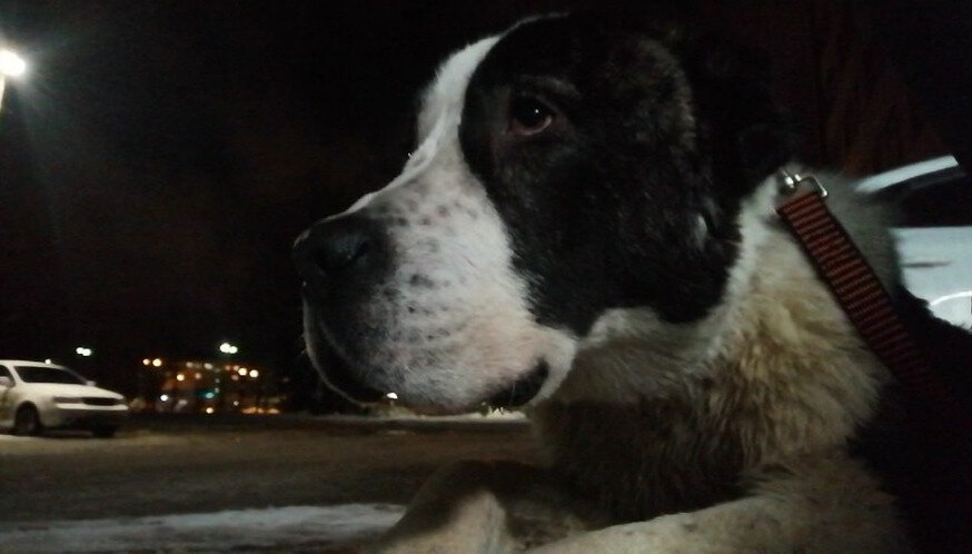 Прождав в кромешной темноте порядка двух,а то и трёх часов, мы-таки дождались хозяина, с которым и прогулялись до их СНТ. По пути я узнал немного о самой собаке и жизни хозяина: мужчина работает до вечера; дома дети и собака, и всех нужно кормить; алабая зовут Зевс и ему даже года не было (если я не ошибаюсь, конечно).