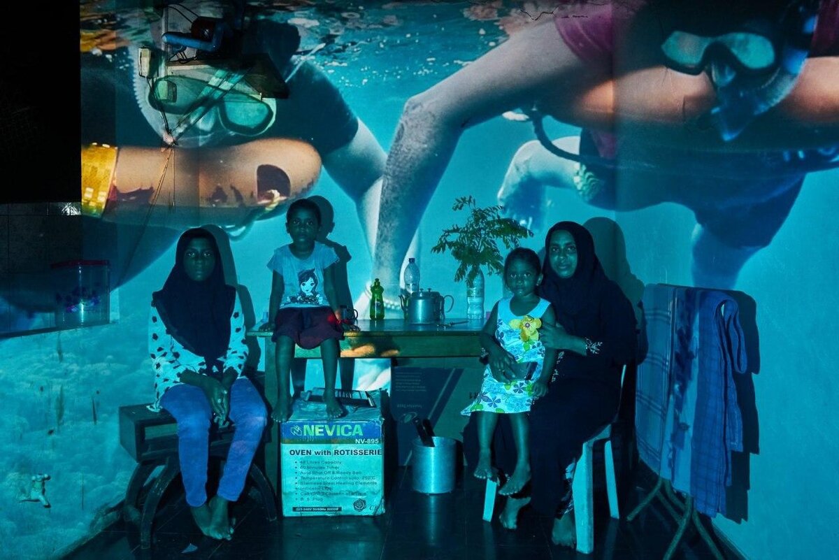 Художники все чаще обращаются к теме глобального потепления. Серия работ Diving Maldives представляет проекцию фотографий, сделанных туристами во время дайвинга на Мальдивах, на стены домов коренного населения этой страны. Получилось красиво, но печально — если выбросы парниковых газов не сократятся, уже к 2050 году 80% территории островного государства может уйти под воду.