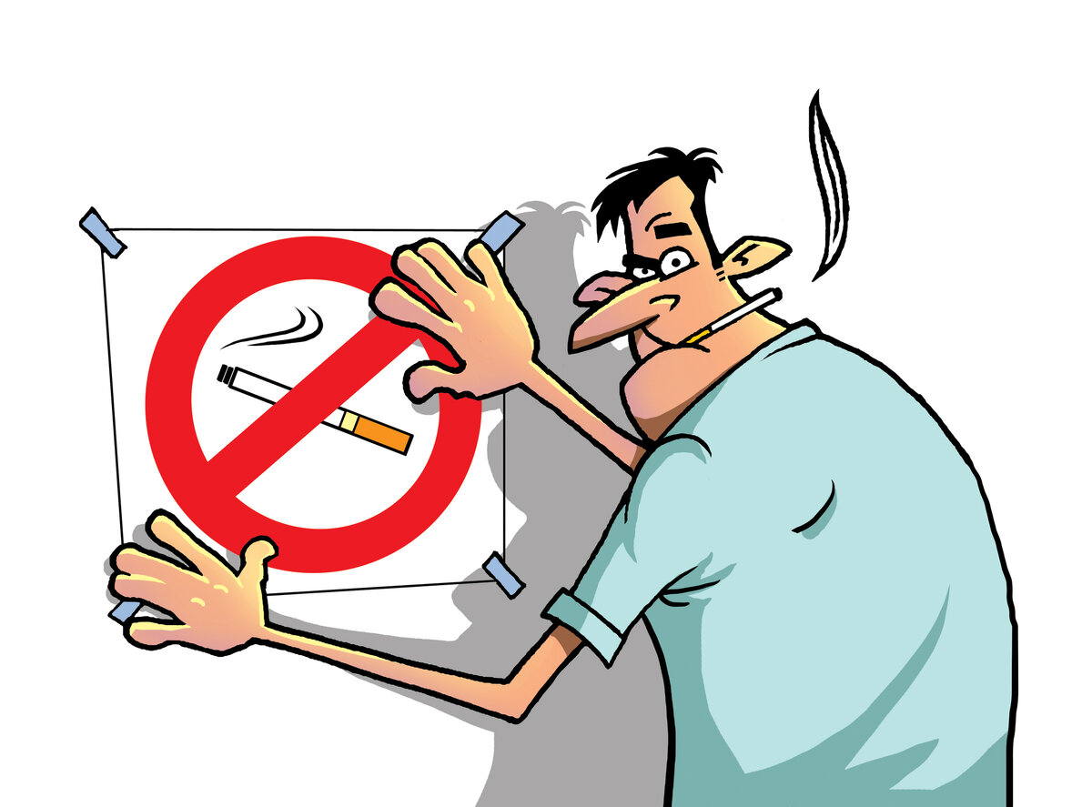 Курить в местах общего пользования в многоквартирном доме запрещено (пп. "а" п. 2 Правил, утв. Постановлением Правительства от 13.08.2006 N 491). К таким местам, например, относятся лестничные площадки и пролеты, лифты, коридоры, чердаки, технические этажи и подвалы. Но есть граждане, для которых, как говорится, закон не писан, и которые «плевать хотели с высокой колокольни» на этот запрет. Как с такими людьми бороться, сейчас расскажем.