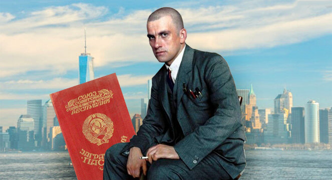 Американский паспорт долгое время представлял собой хоть и аккуратный, украшенный рисунками и рельефной восковой печатью. но все же листок бумаги. Путешественники обычно складывали его вчетверо. Но в 1926 году Госдепартамент ввел новый тип паспорта, теперь это была 32-страничная книжечка с красной обложкой в вырезанным окошком, через которое был виден номер документа. Через полтора десятка лет обложка американского паспорта стала зеленой, но Маяковский застал еще красную. То есть американский паспорт тех лет был точно такой же "краснокожей паспортиной", как и паспорт СССР.