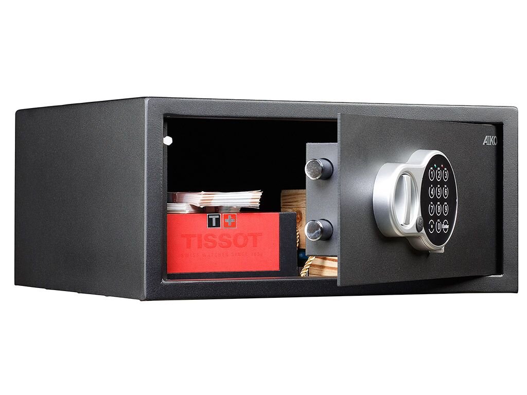 В линейке продукции компании Промет представлены сейфы AIKO. Все модели снабжены световой и звуковой индикацией, закрываются при помощи электронных замков, работающих от батареек ААA 1,5 V.