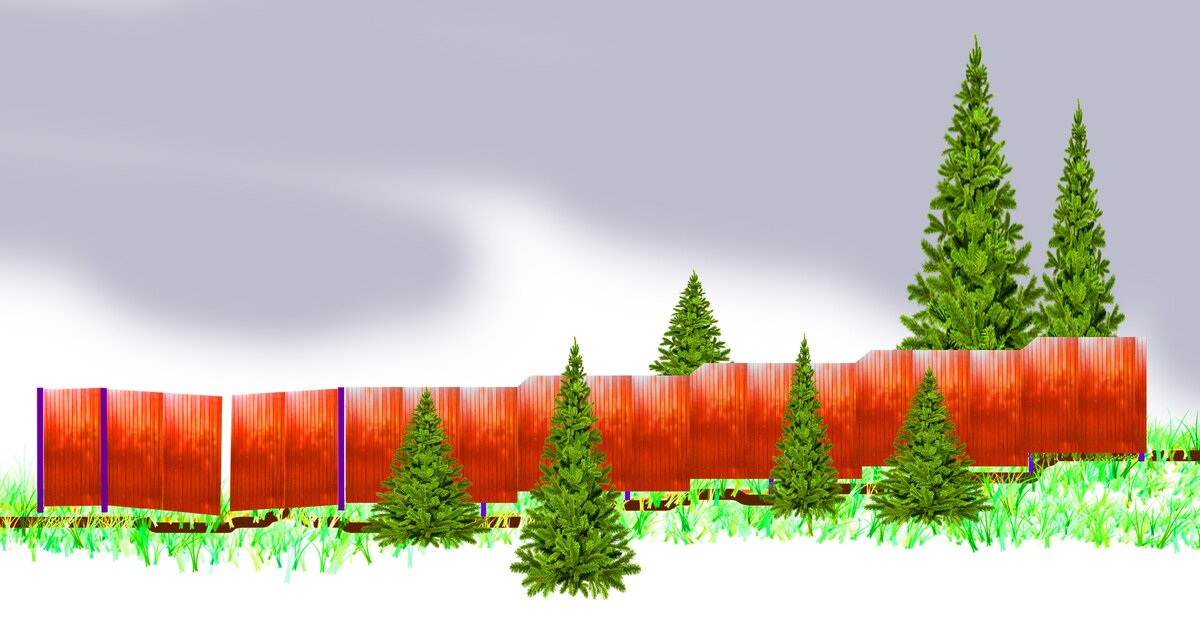 b. По причине все того же вспучивания земли просто необходим зазор, хотя бы 60 мм, между поверхностью земли и нижним обрезом забора. Иначе не подверженные вспучиванию столбы будут жестко удерживать края пролета, а середину деформирует поднимающийся грунт.