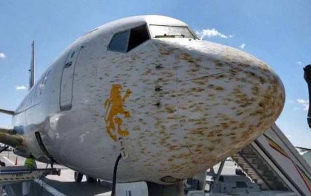 В результате пилоты решили изменить маршрут и через 30 минут посадили лайнер в столице Эфиопии Аддис-Абебе. Самолет Boeing 737 авиакомпании Ethiopian Airlines отменил посадку в аэропорту города Дыре-Дауа на востоке Эфиопии после того, как при снижении он попал в гигантскую тучу саранчи. Об этом сообщила кенийская газета The Standard. По ее данным, самолет рейсом из Джибути дважды заходил на посадку, но так и не смог ее совершить из-за плохой видимости. В результате пилоты решили изменить маршрут и через 30 минут посадили лайнер в столице Эфиопии Аддис-Абебе. В социальных сетях уже опубликованы фотографии самолета, некогда белоснежный нос которого от многочисленных следов погибших при столкновении крылатых насекомых покрылся бурыми пятнами. Такие же пятна на его двигателях и крыльях. А через лобовое стекло кабины пилотов едва ли можно увидеть что-либо из-за толстого слоя разбившейся при ударах саранчи.