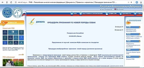Выдержка из официального документа на сайте РКФ ПРОЦЕДУРА ПРИЗНАНИЯ FCI НОВОЙ ПОРОДЫ СОБАК