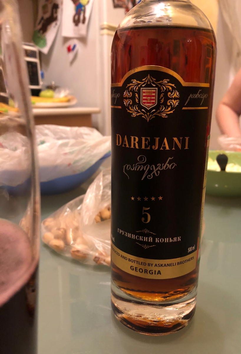 По цене -23% 499,90 ₽ Данный акционный товар Вы можете приобрести в сети магазинов "Бристоль" с 11 по 24 августа Давно мечтаю побывать в Грузии, но пока что-то не срастается. Так что покуда приходиться наслаждаться коньяком грузинских производителей. А конкретно сегодня это коньяк Дареджани 5 лет. Из информации на этикетке изготовитель ООО Братья Асканели, хотя на официальном сайте предприятия никакой информации о данном бренди нет. Все права на территории РФ защищает сеть фирменных магазинов Бристоль, где и был приобретен данный бренди за умеренную цену. Стандартная бутылка, которую использует большинство производителей бренди на территории постсоветского пространства. Черная, готическая этикетка, с золотым обрамлением, намекает на брутальность и благородство напитка. В процессе дегустации аромат в бокале менялся несколько раз. Сначала он казался свежим, каким то виноградным, спустя некоторое вр