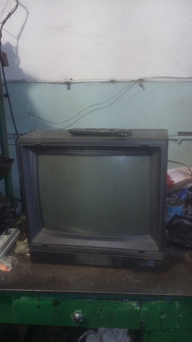 Любопытства ради пробежался по нашему старому предприятию ближе к обеду и проверил состояние старых телеков родом из середины 90-х годов прошлого века. Первый загадочный электроприбор "ВИТЯЗЬ" потерял он связь с аналоговыми волнами и мужики его не включают, так смотрят. По слухам этот "топор" ремонтировали бесчисленное количество раз, но последнее слово в приёме эфира ещё им несказанно. Забавные замочки обнаружены мной по углам кинескопа, видимо здесь крепился защитный экран спасающий зрителя от радиации, экрана нет, вот парни и не включают старый прибор! (шутка) К стате из всех представленных телеков у этого лишь родной пульт. :) В обед мужики слушают радио и смотрят эти гигантские часы! :) Следующий полу покойник, это знаменитый "AKAI", звук есть но изображения ёк! :( Накрылся буквально месяц назад, до этого долго "AKAI" пугал народ чёрной полосой! :) Далее идёт "SONY "с разрекламированной в своё время кинескопной трубкой "Trinitron", как говорила в те времена реклама: "