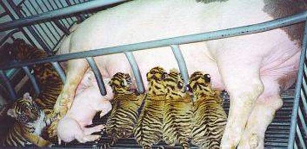 1. Тигрица и поросята. Трудно себе такое представить,не правда ли? Ведь в прямом смысле этого слова одни являются пищей для других, но природа не перестает нас удивлять) В одном тайском зоопарке решили провести эксперимент по приручению тигров, эксперимент заключался в том, что бы свинья воспитывала тигрят, а тигрица наоборот, поросят (их даже приодели в полосатые костюмчики), тем самым работники зоопарка хотели сделать тигров более послушными и привить им чувство что свиньи - не еда, а друзья(хотя не знаю возможно ли это) :) Примечательно что ни одна мать не отвергла чужих детей, а наоборот заботилась о них) Так же, есть схожая история тигрица родила тигрят, но малыши были недоношенными и спасти их не удалось, тогда она впала в сильнейшую депрессию. Она отказалась от воды и еды, даже перестала двигаться. Тигрица попросту умирала на глазах у работников зоопарка. Сначала люди хотели принести для нее других тигрят, но не смогли найти подходящих по возрасту малышей, потом решились на эк