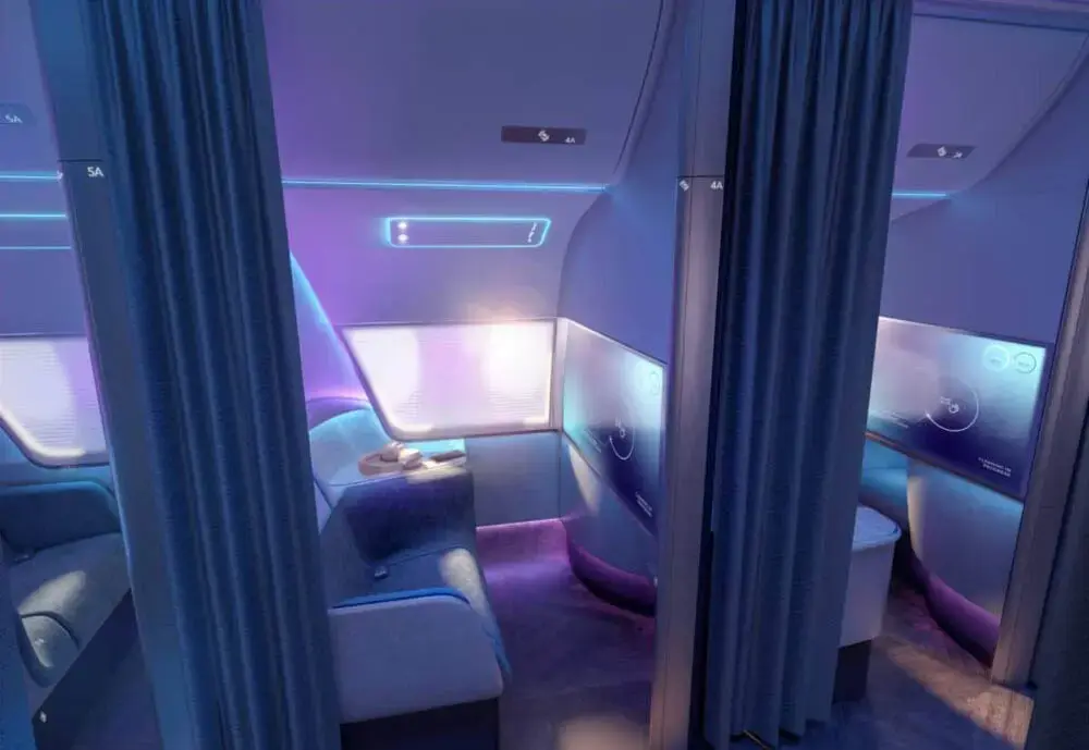 Несмотря на то, что бизнес-класс и так предлагает путешественникам достаточно места для уединения и высокий комфорт, дизайнеры PriestmanGoode нашли компоненты, которые можно улучшить. Новая модель бизнес-класса названа «Pure Skies Rooms» и представляет собой каюту настоящего космического корабля.