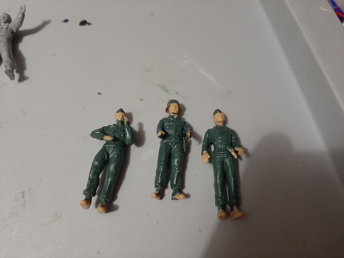 Всем привет сегодня занимаюсь покраской солдат, германские войска первые пошли на опыт, за основу взял краску "полевой серый". Косяки конечно есть, задел немного голову и прочее, потом надеюсь уберу косяки. Перехожу к солдатам СССР.