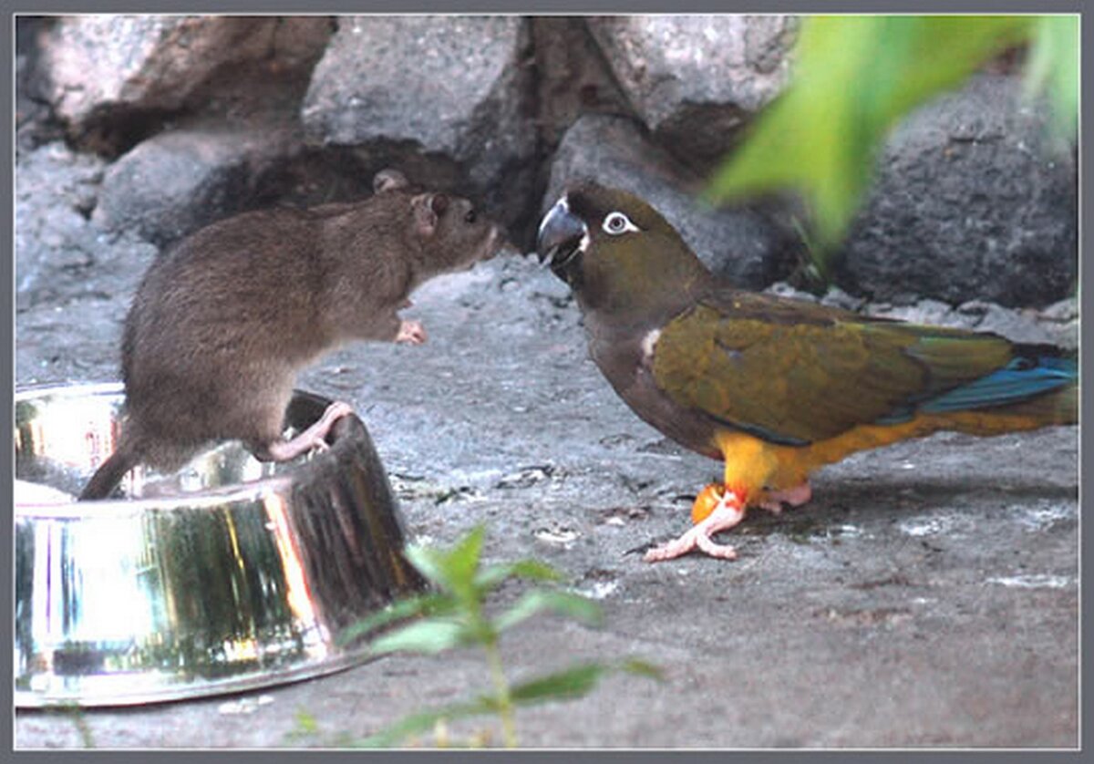 - клетка с попугаем, ну он подошел поглазеть. Попугай: