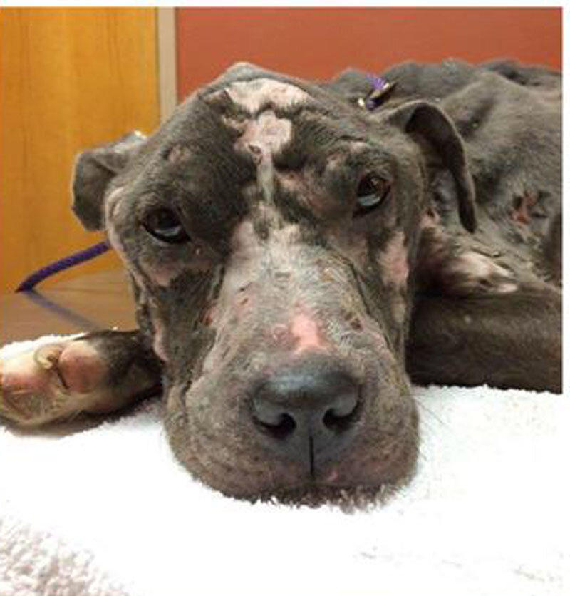 Эта история произошла несколько лет назад в Чикаго. Пес по кличке Август бродил по улицам этого города. На него невозможно было смотреть без слез - на теле собаки были глубокие раны, вызванные химическими ожогами, травмы по всему телу от физического насилия и огнестрельное ранение в лапу. Было понятно: собака подверглась насилию со стороны человека. Кроме того, пес был ужасно истощен, казалось, никакое чудо ему не поможет выжить. Все могло бы для Августа закончиться печально, если бы его не заметил один из спасателей, который тут же доставил Августа в ветеринарную клинику. Состояние собаки было настолько серьезным, что она могла умереть от полученных травм в любой момент. Было диагностировано несколько инфекций и назначены антибиотики. Директор TAF по медицине и спасению животных Бриджит сделала все возможное, чтобы Август вновь стал доверять людям и наслаждаться жизнью. Между ними установилась та связь, благодаря которой у Августа появилась надежда на выздоров