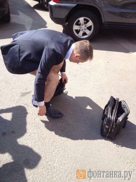 Жарким июньским денечком государственный советник РФ 1-го класса Валентин Верещака фланировал по центру Санкт-Петербурга в дорогом деловом костюме, но…абсолютно без штанов и с пустым портфелем, что и зафиксировали телефоны очевидцев.