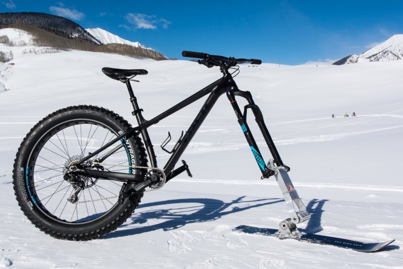 Как вы думаете, удобно ли ездить на лыжах зимой? А если лыжа установлена на велосипеде? Например так: Но, оценивая возможности повседневной эксплуатации такого велика приходится приходить к выводу о том, что это мягко говоря не вариант... Сможете вы на таком проехать в городе? Не думаю... И дело как раз в том, что дороги в населенных пунктах зимой зачастую бывают расчищены, а значит и передвигаться по ним на лыжах не получиться.... А если такой вариант: Лыжа имеет прорезь и находится чуть выше нижней части колеса, что позволяет двигаться по снегу (край колеса слегка утапливается в снег) или двигаться по твердой дороге без необходимости дополнительных действий. Просто выезжаете со снега на очищенный тротуар или дорогу, а затем снова едете по снегу практически не задумываясь. Система крепится на ось колеса (правда способ крепления надо доработать) и имеет дополнительную ось на лыжах для обеспечения дополнительной гибкости при проезде препятствий. Высота может регулироваться. Можно отрег