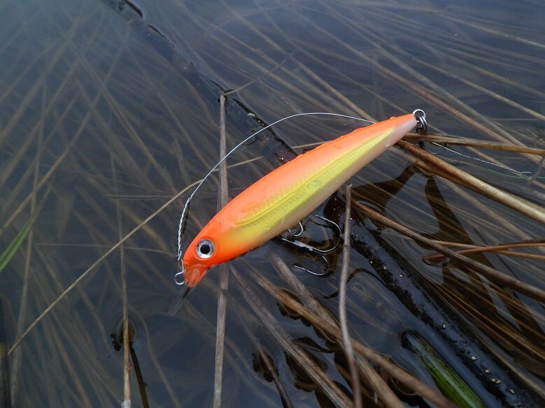 А щучку я свою всё-таки нашел! Но не подержал в руках. Схватила 80-й Храп в оранжевом цвете между двух кустов прямо на моих глазах и, метнувшись под один из них, оставила воблер на ветке, изогнув поводок. Под кило была. Пусть плавает, всё равно бы отпустил)