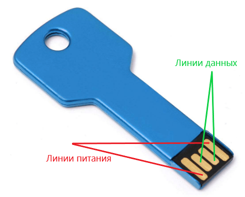 За данные отвечают 2 и более контакта в зависимости от версии USB. Половина из них передает сигнал от основного устройства (хоста) к периферии, а вторая половина – обратно.