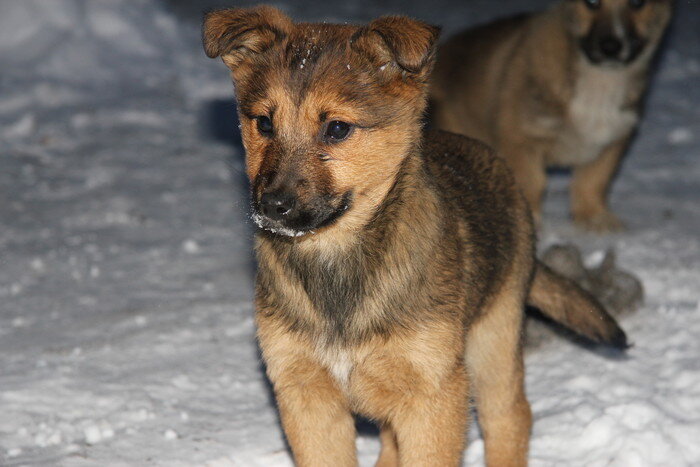Когда они забрали щенка из приюта, ему было около трех месяцев, его звали Санжар. Правда, щенок на него не очень откликался, да и хозяевам оно показалось не самым подходящим. В новом доме Санжар всего боялся и первые дни просто жил под столом: дом новый, люди незнакомые, кошка еще вредная, лапой бьет все время. В общем, бедный малыш! Выманить его из укрытия можно было только едой. Понятно, что нужно было просто время и ласка. А пока суд да дело, решили хозяева поменять щенку имя, потому как, думаю, все помнят, что "как вы лодку назовете, так она и поплывет".😉