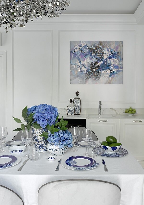 Свежий сине-белый интерьер столовой в красивом проекте дизайнера Натальи Преображенской!
