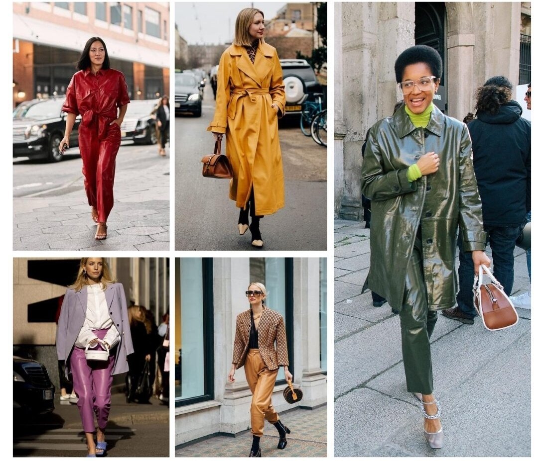 Любая одежда из цветной кожи (натуральной или искусственной) будет хитом предстоящей осени. Это могут быть брюки, рубашки, комбинезоны, платья, а также верхняя одежда - куртки, тренчи. Чтобы образ с вещами из кожи не выглядел вульгарно, одежда не должна сидеть в обтяжку.