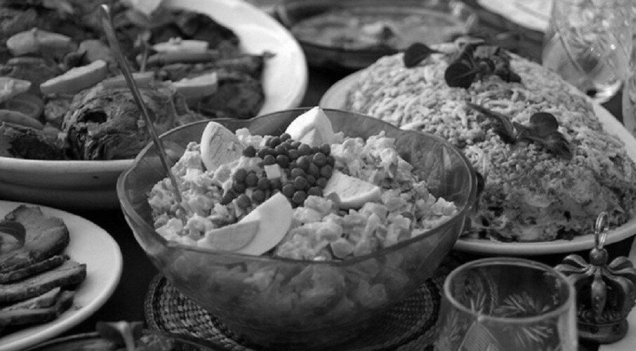 Салат со сметаной и яйцом Обмытый и обсушенный зеленый салат нарезать и сложить в миску. Яйца, сваренные вкрутую, нарезать тонкими ломтиками и смешать с соусом из сметаны с уксусом. Перед самой подачей к столу заправить салат сметанным соусом с яйцом, уложить в салатник, обложить кружочками свежих огурцов и посыпать мелко нарезанным укропом или зеленью петрушки. Подается салат ко всем мясным и рыбным блюдам. На 300 г зеленого салата — 1 свежий огурец, 1 яйцо, 1/2 стакана соуса из сметаны с уксусом. Салат с маслом и уксусом Обмытый и обсушенный зеленый салат нарезать поперек листьев и сложить в салатник. Перед подачей на стол полить приготовленным соусом из уксуса и растительного масла, перемешать и посыпать укропом или зеленью петрушки. Можно прибавить свежие огурцы, нарезанные кружочками, а также корочки белого хлеба, натертые чесноком и нарезанные в виде маленьких ромбов, уложив их поверх салата. Подают салат ко всем блюдам из жареного и вареного мяса, а также к жареной рыбе. На 300