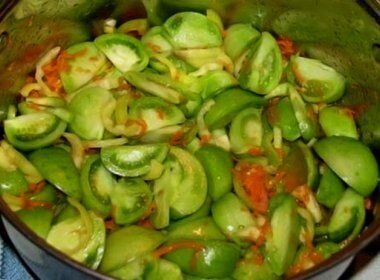 На ведро зелёных помидор - по 300гр. -чеснока,сладкого перца,сахара и 9%-ного уксуса,2-3шт.- моркови и столько же стручков горького перца,6ст.л. -с верхом соли;400гр.-растит.масла;зелень укропа,петрушки,кинзы -по вкусу. Помидоры разрезать на 4 части,морковь натереть на крупной тёрке(можно и на тёрке по корейски как вам нравится),остальные овощи нарезать произвольно. Сложить все компоненты в эмалированную посуду,перемешать и оставить под гнётом на 4-6часов.Затем разложить в банки,стерилизовать 0,5л-20минут и закатать.Готово. САЛАТ ИЗ ЗЕЛЁНЫХ ПОМИДОРОВ. Рассол: 5л.-воды;1ст.-соли(200гр.). Взять 1ведро(10л.)зелёных помидоров,порезать на 4-6 частей,залить кипящим рассолом и оставить на 4 часа. Когда помидоры остынут,рассол слить. ПРИПРАВА:пропустить через мясорубку 20шт.-красного болгарского перца; 2шт.- горького перца и 300гр.-чеснока,добавить: 1ст.-сахара; 1ст.9%-ного уксуса; 0,5л.-растит.масла;посолить по вкусу,поставить на огонь. Когда масса закип