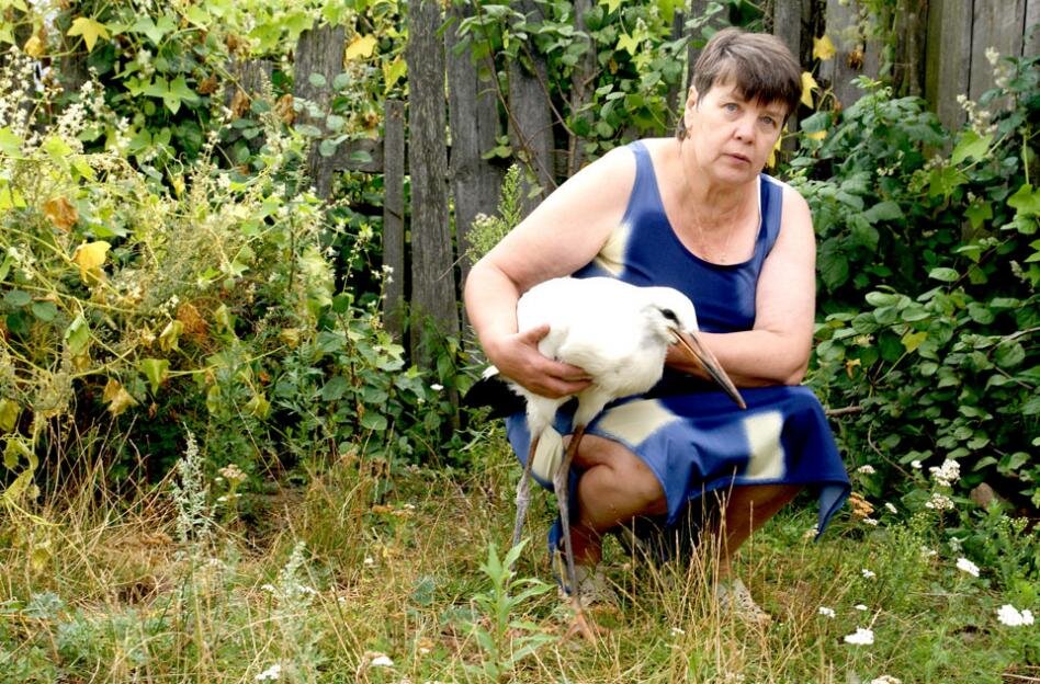 Жительница агрогородка Боровица Кировского района лечит больных птиц и спасает их от неминуемой гибели. Сейчас у Светланы Шлапаковой второй месяц живет аист, который давно стал для нее ручным, и часто прогуливается с ней по улице. — Мне позвонил муж и говорит, что аисты выбросили маленького птенца из гнезда. Видимо, им нечем было кормить его. Если хочешь — немедленно приезжай, ведь птица погибнет. Я, не раздумывая ни минуты, побежала к водонапорной башне, на соседнюю улицу. В траве заметила маленькое беспомощное существо. Птенец еле дышал, — вспоминает, как все начиналось Светлана Шлапакова. — Поила и кормила его из шприца. Измельчала на блендере рыбу, яйцо, чтобы он мог есть. И случилось чудо — птица на глазах стала расти. Сейчас аист уже совсем окреп.