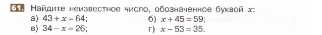 Необходимость находить неизвестные компоненты действий приводят к простейшим уравнениям.
