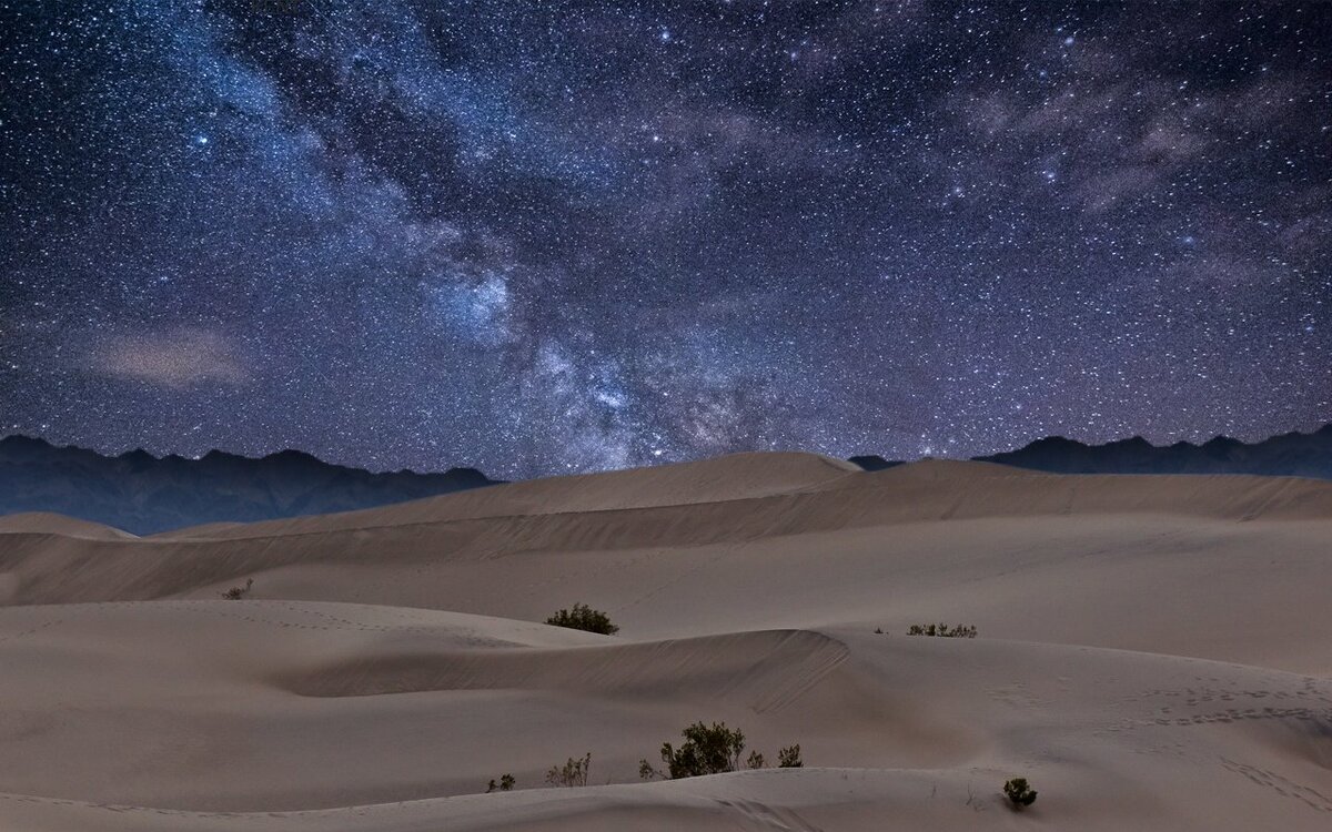 Наступила ночь в Сахаре. Ночью в пустыне прохладно. Крупные звезды и луна ярко освещали пески. И этот песок вспыхивал как мириады бриллиантовой пыли. Сверкало кругом. Космическая картина.Горел огромный костер.Местные готовили нехитрую еду,