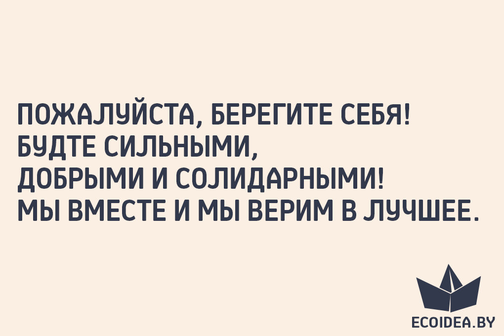 Команда Ecoidea.by переживает за всех, кто пострадал и продолжает страдать от событий, которые происходят в нашей стране. 🔹 Чтобы выразить солидарность с теми, кто до сих пор не вернулся — или вообще больше не вернется — домой, можно помочь им и их семьям. Ниже — ссылки, которые могут быть полезны: — Сбор средств на оплату штрафов и на поддержку семей репрессированных: https://www.facebook.com/donate/1123543824684874/1653285988160881/ — Сбор средств для помощи людям, лишившимся работы по политическим мотивам, бастующим, в том числе работникам госпредприятий и госСМИ, поддержавшим смену власти: https://www.facebook.com/donate/759400044849707/1654541381368675/ — Сбор средств на лекарства, лечение, реабилитацию пострадавшим во время мирных демонстраций: https://imenamag.by/projects/help-for-injured — Также волонтёры создали место, где можно получить и предложить юридическую, медицинскую, психологическую и другую помощь: probono.by — Чаты в телеграме, в которых собирают всю информацию