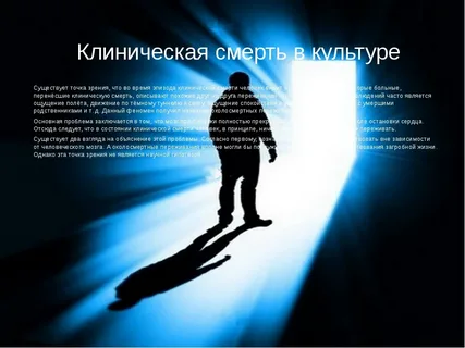 Учёные решились ответить на вопрос о загробной жизни, и научным путём узнать, есть ли жизнь после смерти. И когда человек выходил из клинической смерти, то рассказывал о том, что видел как его родные плакали, что говорили, во что были одеты, и даже мог слышать самые сокровенные вещи о нём. Такая правда поражает, и в то же время пугает. Не уж то мы после смерти будем вечно бродить по Земле в оболочке призрака? Нет! Как рассказывали люди, бродят они недолго, потом за ним приходит светлое существо, которое определяет, остаться жить человеку, или уйти в мир иной. Кому существо оставляло шанс на жизнь, могут сейчас поделится об этом с нами, а кому не оставляло шанса, те ушли по ту сторону. С точки зрения здорового человека, всё вышеперечисленное является бредом и не более. Но даже самым уважаемым учёным, приходится признавать тот факт, что человек в клинической смерти продолжает существовать вне его тела и видеть всё происходящее вокруг, что по сути, невозможно для скептика