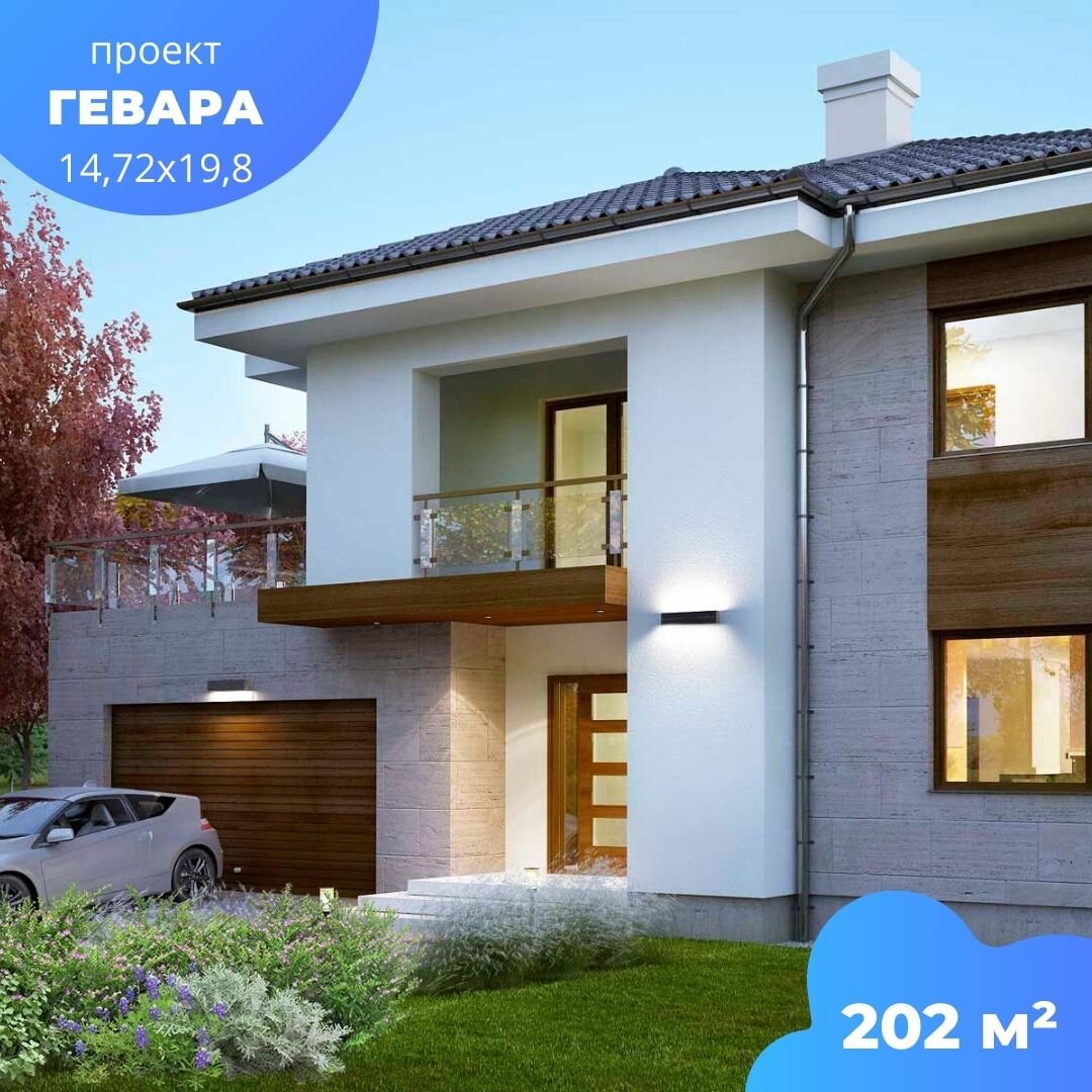 Проект дома "Гевара" — это большой коттедж для самого комфортного отдыха и постоянного проживания! Целых 2 террасы на все случаи жизни — это вам не шуточки! В жаркий день можно позагорать, а в дождливый уютно посидеть под крышей с чашечкой горячего какао.