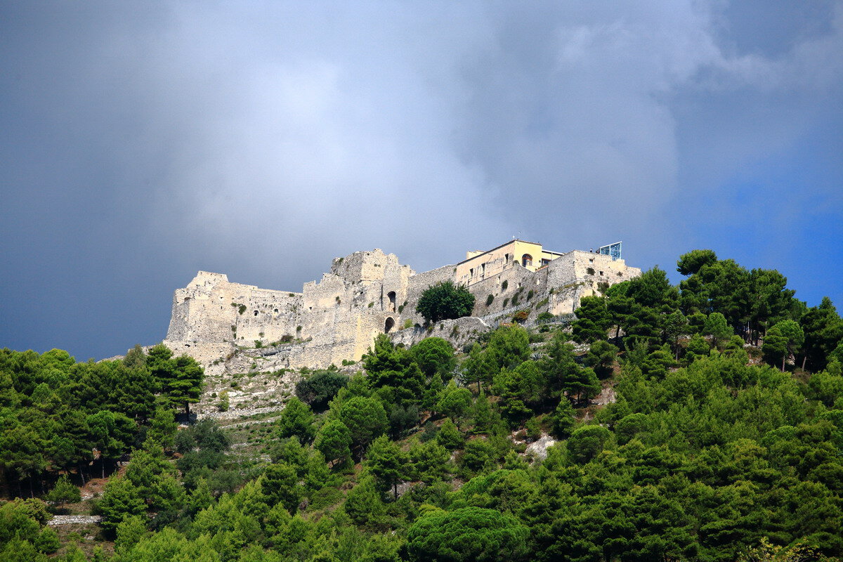 Над городом Салерно высоко на горе возвышается лонгобардский замок Ареки (8-11 век) .