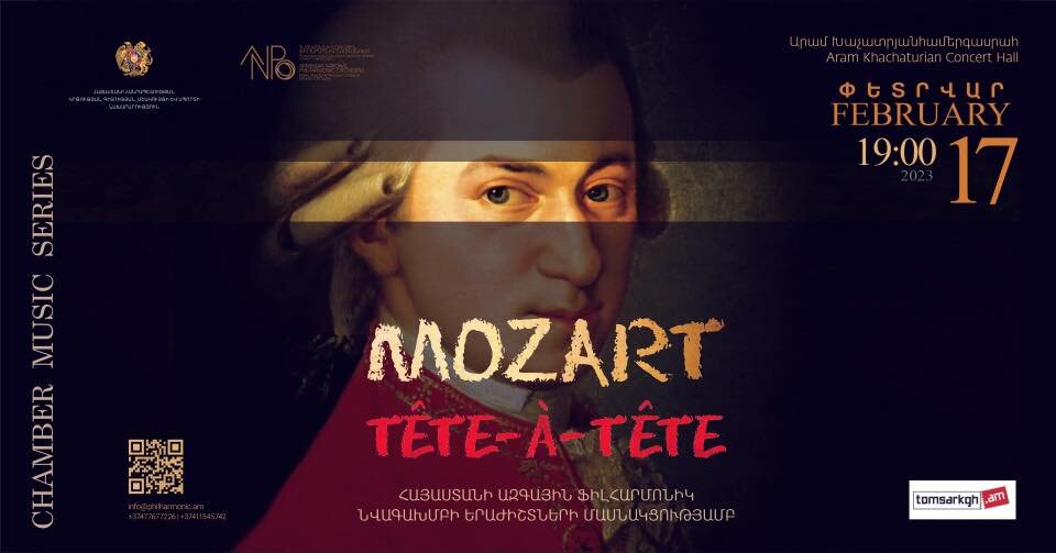 Արամ Խաչատրյան համերգասրահում հերթական «Տետ-Ա-Տետ»-ն է, որի ընթացքում կարելի է ունկնդրել Ֆիլհարմոնիկի կամերային կազմի լավագույն երաժիշտներին՝ հենց համերգասրահի բեմահարթակից: Այս անգամ կներկայացվեն Մոցարտի հանճարեղ ստեղծագործություններից մի քանիսը: Համերգից հետո հանդիսատեսը հնարավորություն կունենա շփվել երաժիշտների և հյուրերի հետ, ինչպես նաև կվայելելու 𝐍𝐎𝐀 𝐖𝐢𝐧𝐞𝐬 հայկական արտադրության անմահական գինի: Միջոցառումը տեղի կունենա փետրվարի 17-ին՝ ժամը 19:00-ին: Տոմսերը կարելի է ձեռք բերեք առցանց, արժեքը՝ 10 000 դրամ: Լրացուցիչ տեղեկությունների համար այցելեք կայք Հայաստանի նորությունները Telegram-ում