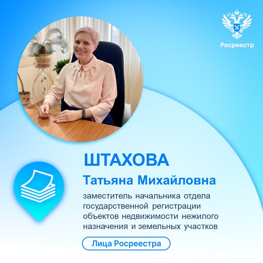 В рамках рубрики «Лица Росреестра» в этот раз мы расскажем о Штаховой Татьяне Михайловне, заместителе начальника отдела государственной регистрации объектов недвижимости нежилого назначения и земельных участков Управления Росреестра по Воронежской области.