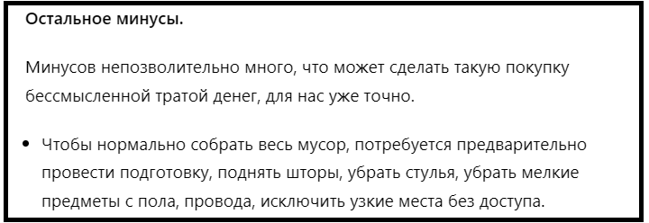 Сегодня наткнулась на статью в которой автор разносил свое приобретение, а именно покупку робота-пылесоса. Я когда читала, но в основном комментарии всегда удивлялась, а что же там такого уж в этом роботе плохого. Естественно в комментариях всего подробно не опишешь, были только некоторые моменты, а тут целая статья и как раз о том самом о чем мне было интересно. Обожаю слушать или читать противоположное мнение, потому что из него можно почерпнуть тоже очень много полезного для себя, а иногда и задуматься над тем действительно ли правильно твое собственное. В отличии от автора я от моего пылесосика просто в восторге, поэтому мне даже стало, как то немного обидно за моего помощника. И именно поэтому мне очень хочется разобрать те моменты которые не устраивают автора. Первый: да это действительно так, прежде чем пропылесосить нужна небольшая подготовка, НО эта же подготовка нужна и для обычного пылесоса. Если вы желаете нормально пропылесосить то вам придется точно так же поднять шторы,