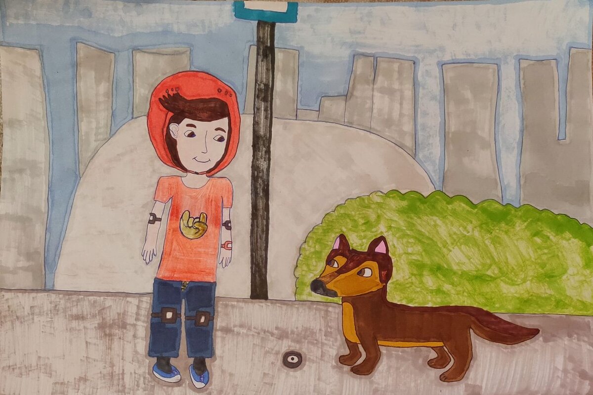 Настоящий детектив. Как-то раз днём мальчик Егор решил прогуляться по городу и по парку. Он переоделся в футболку, штаны и чёрные носки, надел кроссовки, взял с собой скейтборд, надел на голову шлем, на локти - налокотники, на колени - наколенники и вышел на улицу. Егор встал на скейтборд ногами. Одна нога стоит на доске, а другая толкает. И Егор начал кататься на скейте. Мальчик ехал, ехал на нём. Когда Егор катается, он почему-то смотрит вниз под ноги и невнимательно, куда он едет. Вдруг, Егор увидел стоящий железный столб с фонарём, удивился, завопил от страха и врезался в столб. Но он не получил никаких ушибов и ран. У скейтборда одно колёсико отвалилось и укатилось далеко. И чуть машины его не раздавили. И колёсико укатилось в куст. А Егор грустно пошёл садиться на скамью и горько заплакал. Вдруг, откуда ни возьмись пришёл дворовый пёс к мальчику. Егор посмотрел на него, всхлипнул, вытер слёзы из глаз и спросил: - Ты кто? - Я пёс - ищейка. Меня зовут Бобик. - ответил пёс. - Что с