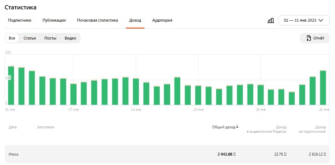 Как я расстроился в 31 января недобрав всего несколько рублей до 3 000 рублей)) Почему? Я доход получаю как юрлицо, а нам денежку переводят в последний рабочий день месяца, но не менее 3 000 рублей. А мне насчитали 2 942 рубля)) Понятно что деньги не пропадают, если бан не наложат внезапно, и суммируются с начисленным за февраль но уже не то, казалось бы. Азарт что ли пропадает. Интересно ведь побеждать, каждый месяц хоть немного но лучше что бы, предыдущего. Февраль азарта всё таки подкинул. Сегодня 17.02.23 доход начисленный с 1 февраля сравнялся, и чутка превзошел, начисления с 1 по 31 января 2 968 уже победа, но впереди ещё 11 дней. На данный момент доход плавно снижается. Кстати, первый минимум января тоже на 17 число выпал. Одна из причин снижения доходов, по горизонтальным видео, может крыться в мобильном приложении Дзен Друзья проверьте сами. При просмотре горизонтальных видео в мобильном приложении Дзен рекламных вставок нет. А нет рекламы, нет оплаты. Проверьте, напишите в ТП